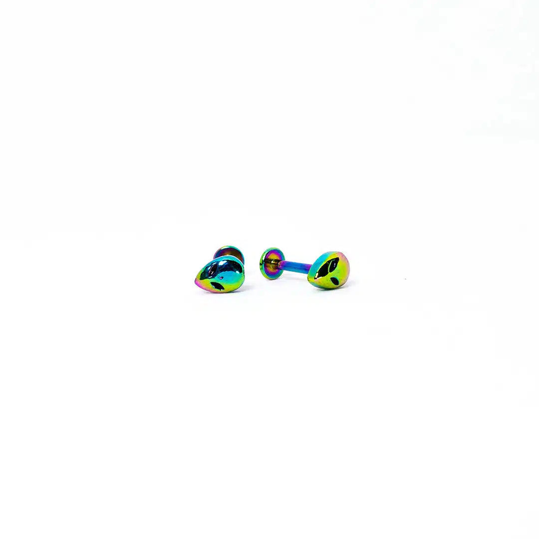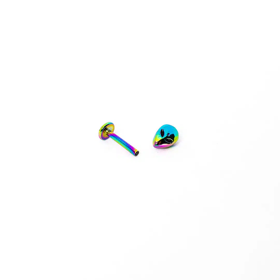 Dale un toque extraterrestre a tu look con este exclusivo labret en forma de alien. Su vibrante color tornasol y su diseño único lo convierten en una joya imprescindible para quienes buscan destacar. Fabricado en acero quirúrgico 316L, garantiza resistencia, calidad y durabilidad sin perder su brillo ni color.