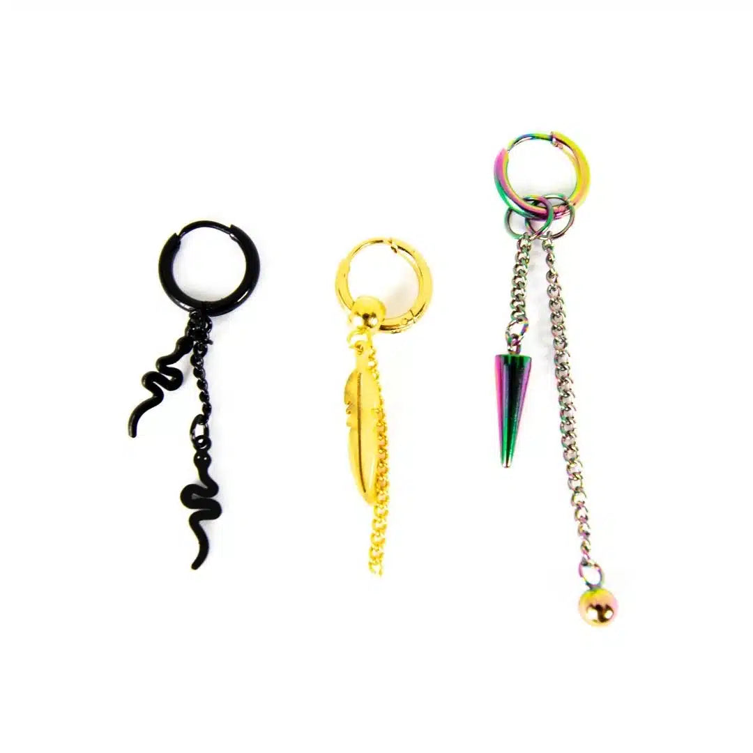 Elegantes y sofisticadas candongas con cadenas colgantes, adornadas con diseños únicos como serpientes, cilindros, péndulos, cruces y plumas. Fabricadas en acero quirúrgico 316L, garantizando durabilidad, resistencia y conservación del color con el tiempo. Perfectas para realzar tu estilo con un toque moderno y llamativo.