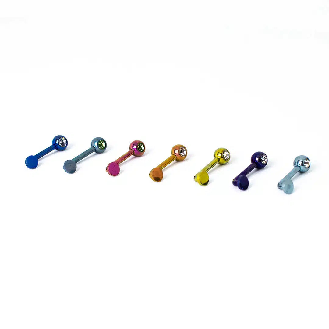 Esta elegante joya de titanio con forma de ‘L’ ha sido diseñada especialmente para la perforación Cristina, brindando comodidad, seguridad y un toque sofisticado. Su delicado circón incrustado en la parte superior aporta brillo y distinción, mientras que la base plana protege la zona sensible de la perforación.