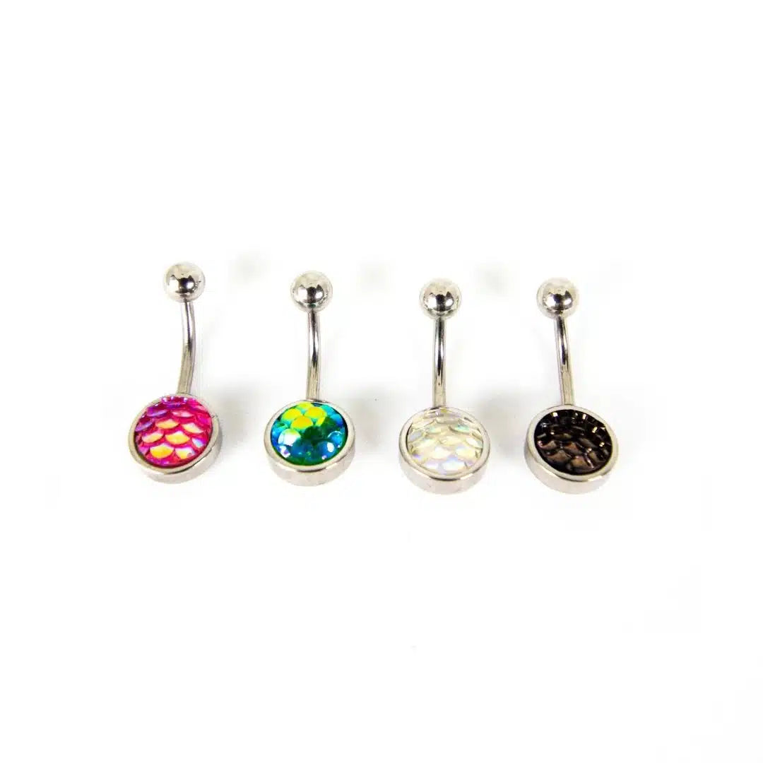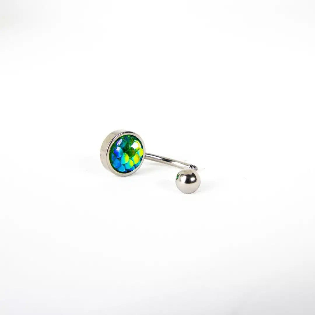 Elegante y llamativo piercing para ombligo, diseñado con un exclusivo patrón de escamas en la parte inferior.
